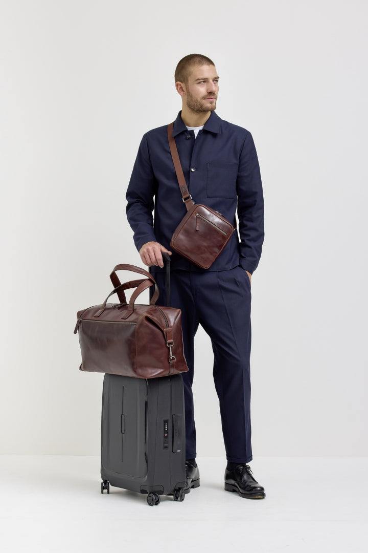 Ergänze deinen JOST Weekender mit einem passenden Kulturbeutel aus hochwertigem Leder oder veganen Materialien. Er bietet ausreichend Platz für alle Pflegeprodukte und passt perfekt in den Weekender, ohne viel Raum einzunehmen.
